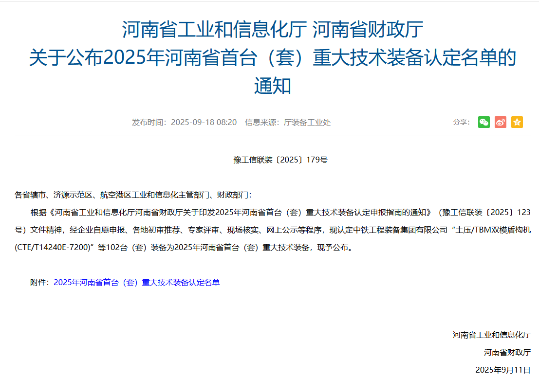 首台(套)重大技术装备认定是河南省推动装备制造业高端化、智能化、绿色化发展的重要举措,入选装备需具备技术含量高、创新程度强、应用前景广等核心特质,对推动行业技术升级具有重要示范意义。